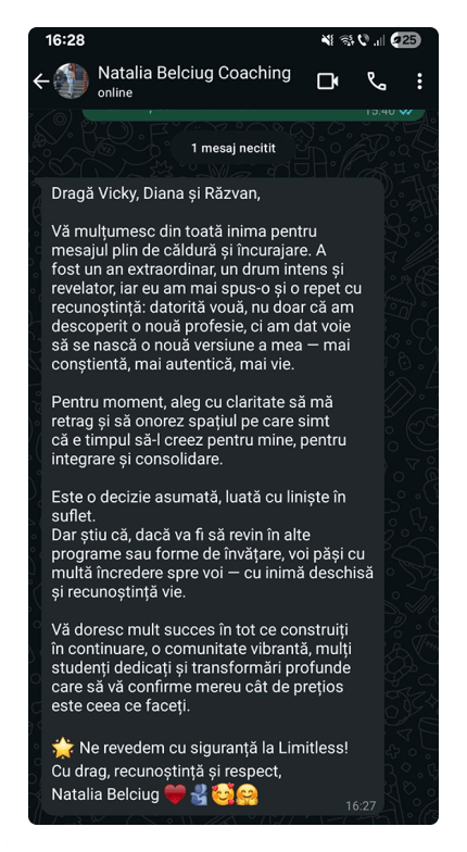 Coaching-ul nu doar că l-a ajutat să răspundă la aceste întrebări, dar i-a oferit instrumentele să transforme răspunsurile în acțiuni. A fost începutul unei călătorii care l-a dus de la confuzie la claritate, de la stagnare la transformare și, cel mai important, de la frică la libertate.
