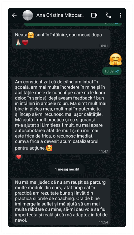 „Nu a fost ușor. Nu a fost rapid. Dar coaching-ul mi-a oferit ceva ce nu mai avusesem de mult: claritate.”
